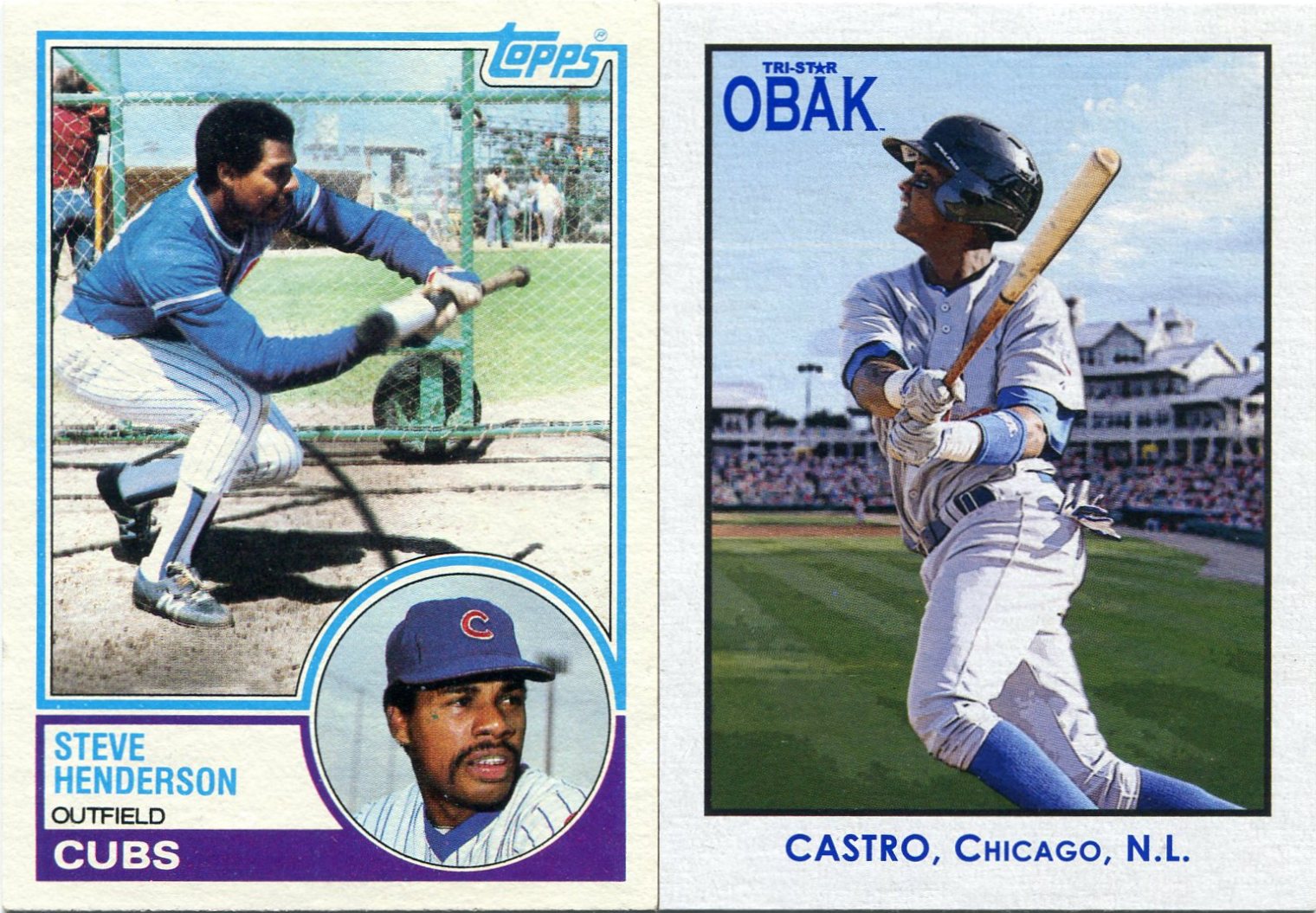 The Henderson is a fantastic shot (yep, bunting) from the 1983 Topps checklist, and one that I hadn't seen prior to this PWE. Obak works a hundred times better with the older ballplayers, but I'm not turing down a card of Starlin Castro from his 2010 rookie season.